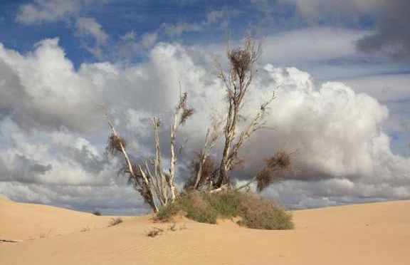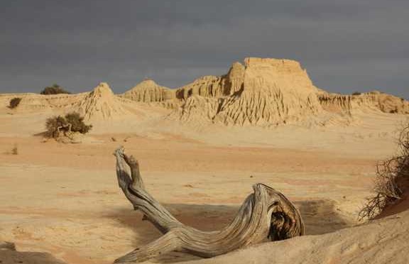 Sometime in the late seventies or early eighties, I saw a television program about the discovery of some human remains, revealed by a relentless desert wind blowing over ancient sand dunes fringing a lake which had last seen water some 15,000 years ago. These remains, dubbed ‘Mungo Man’ (although it proved to be woman’s bones), had been cremated some 30,000 years ago, and are claimed to be the most ancient ceremonial burial ever discovered. The later discovery of a man’s remains, coated in red ochre, confirmed the importance of the region, which, with the whole string of lakes stretching to the north, has now been designated a World Heritage Site. My first visit was in 1991, and my second was just last week, in mid-April 2009.