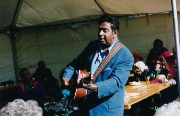 The second, and perhaps the most endearing memory of Jimmy was in 2000, at Raukkaan on Lake Albert, when a large gathering of Aboriginal talent celebrated the culture and history of this Ngarrindjeri community. It was not Jimmy’s stage performance I remember, so much as later, when he strolled amongst a group of seated elders, mostly women, and for at least an hour entertained them with a huge variety of songs, unaccompanied except for his acoustic guitar, and that huge dose of humanity. He delighted in the pleasure he brought to that tiny audience, but it was obvious to anyone there that these were the qualities he delivered in spades to every performance. But this was simply a wonderful example of his love for his people, and I have no doubt, of his love for all people.